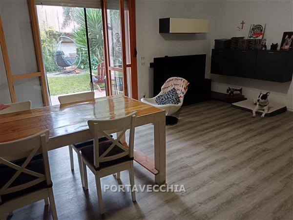 Ottimo appartamento al piano rialzato con ingresso condominiale composto da soggiorno con accesso a grande giardino di proprietà con ripostiglio in legno e gazebo, cucina abitabile, disimpegno, bagno con finestra e camera matrioniale. Ottimo stato.