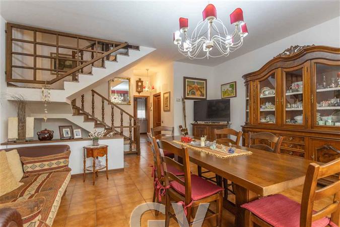 Terratetto a schiera con ingresso indipendente da corte privata e veranda, l'immobile è così composto: al piano terra ampio soggiorno, cucina abitabile con accesso al giardino sul retro, studio e bagno. Da scala interna al soggiorno si raggiunge il primo piano dove troviamo tre camere da letto tutte con accesso ai terrazzi, al piano superiore un vano ad uso deposito occasionale. Sempre dal soggiorno collegata taverna con caminetto, lavanderia e garage.