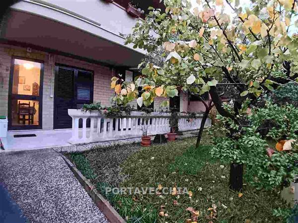 MARINA DI GROSSETO: Ottimo appartamento con ingresso indipendente da giardino privato con portico di accesso, cucina abitabile, salotto con accesso a grande e bellissima veranda coperta con affaccio lato mare, disimpegno notte, due camere matrimoniali, una camera doppia e doppi servizi. Garage di 33 mq collegato anche direttamente dall'appartamneto tramite scala a chiocciola. Buone rifiniture, ottima posizione a 500 mt dal mare. Riscaldamento a metano.