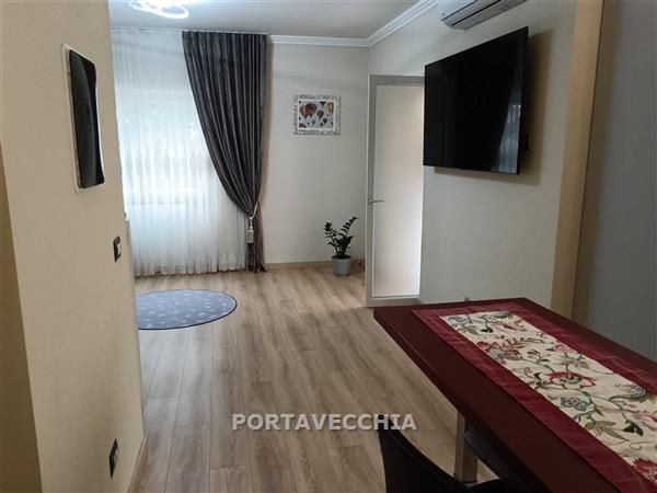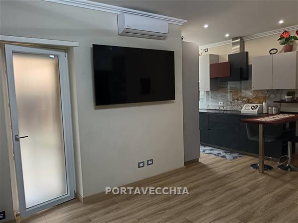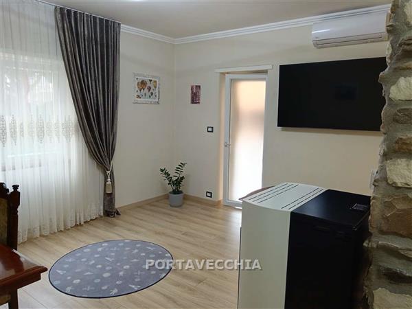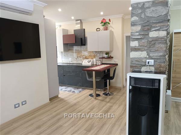Appartamento completamente ristrutturato al primo piano rialzato in palazzina con lavori condominiali eseguiti, ( facciata, fogne, recinzione ) composto da ingresso, soggiorno con cucina aperta e balcone, disimpegno notte, due camere matrimoniali, ripostiglio e bagno ( rivestimenti e pavimenti l'unica cosa da fare ). Garage nella corte condominiale in uso gratuito. Oggetto ben rifinito. Viene venduto completamente arredato