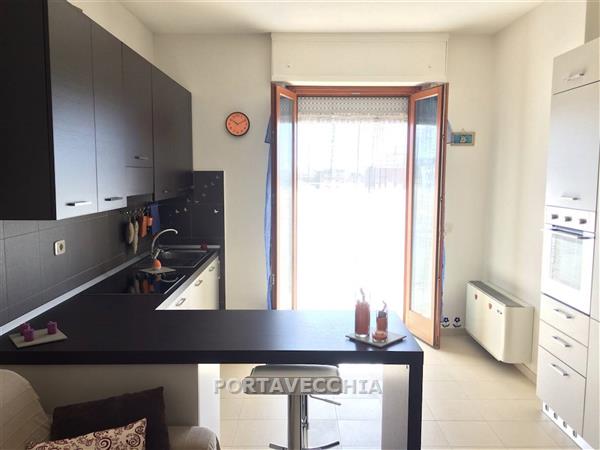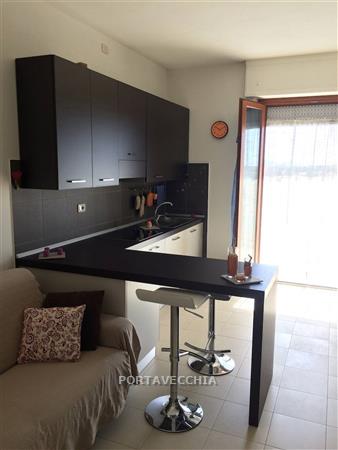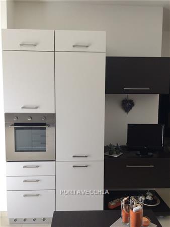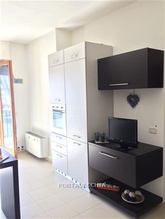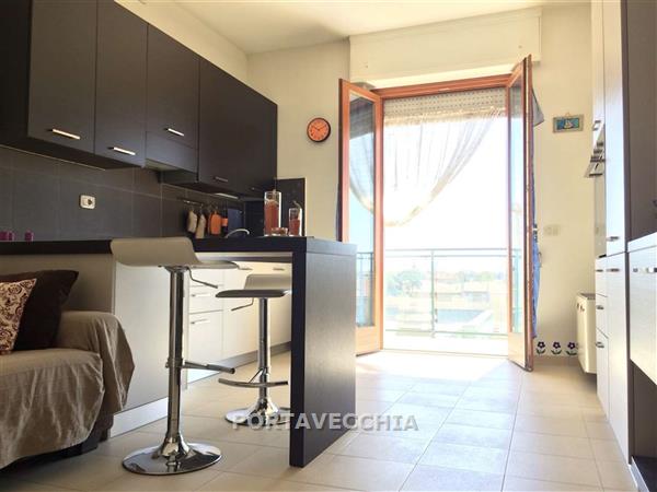 Appartamento posto al quinto piano con ascensore in ottimo stato e molto luminoso composto da soggiorno con parete cottura e balconne, camera matrimoniale e bagno con finestra. Garage al piano seminterrato. Libero. Si vende completamente arredato con mobili seminuovi.