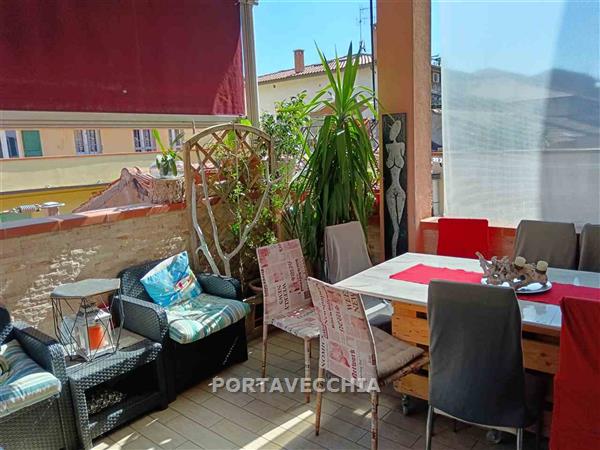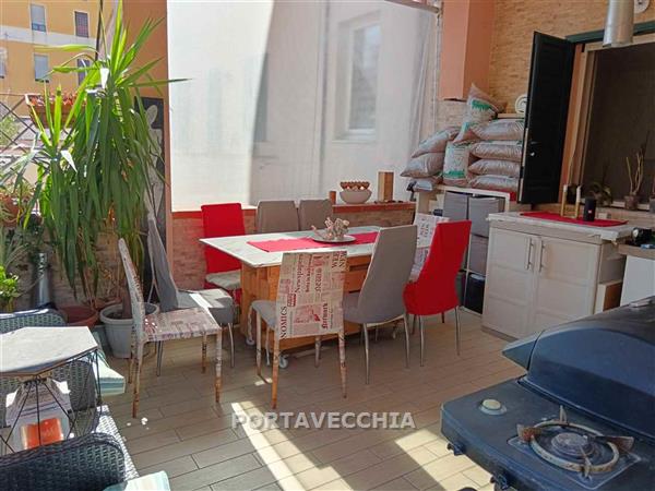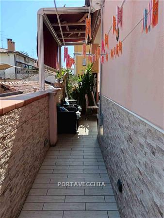 Appartamento completamente ristrutturato al primo piano di piccola palazzina composto da ingresso, ampio soggiorno con cucina aperta e ampio terrazzo vivibile, due camere doppie , camera matrimoniale, doppi servizi ( uno con sistema sanitrit ) . Cantina al piano terra. Oggetto molto particolare , luminoso, con la particolarità dell'ampio terrazzo.