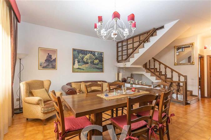 Terratetto a schiera con ingresso indipendente da corte privata e veranda, l'immobile è così composto: al piano terra ampio soggiorno, cucina abitabile con accesso al giardino sul retro, studio e bagno. Da scala interna al soggiorno si raggiunge il primo piano dove troviamo tre camere da letto tutte con accesso ai terrazzi, al piano superiore un vano ad uso deposito occasionale. Sempre dal soggiorno collegata taverna con caminetto, lavanderia e garage.